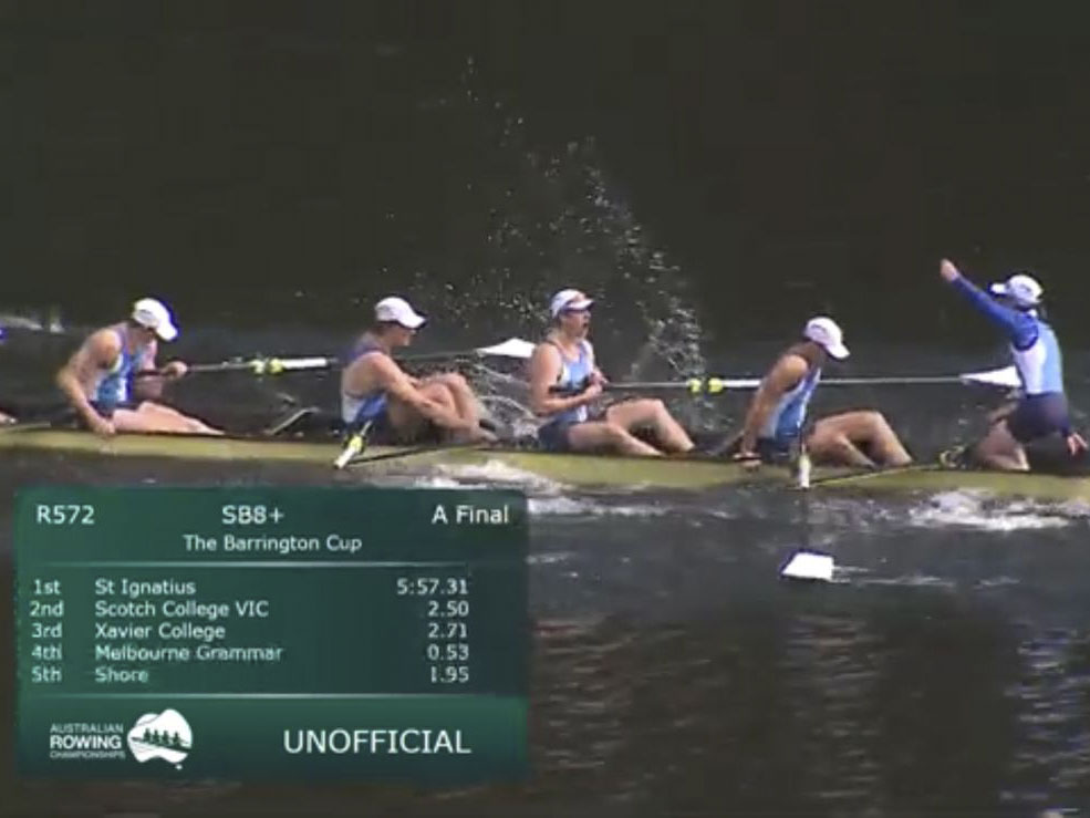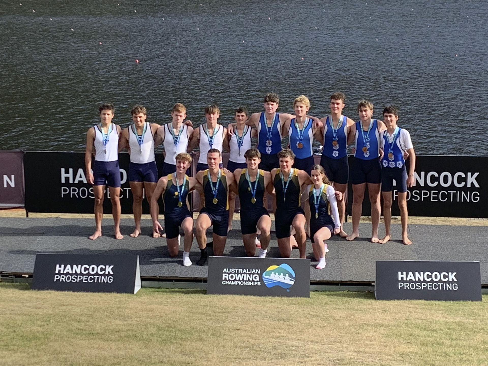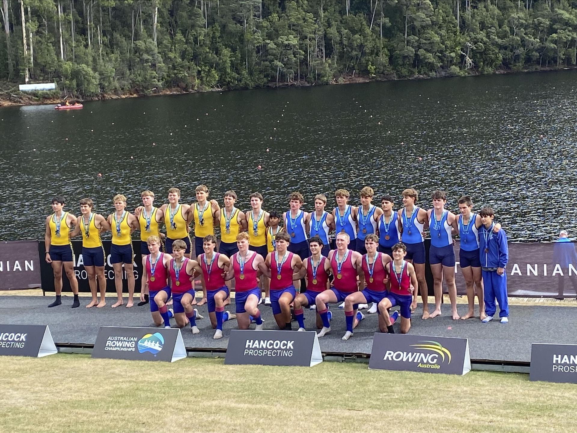 The Year 10.1 Eight rowed in the National Under 17 Eight Championship early in the week, finishing second in their heat to qualify for the A Final, where they finished strongly to claim third place, 0.08 seconds behind the second-placed crew. They then raced in the National Under 17 Schoolboy Eight Championship, winning their heat in the fastest time. In the final, they finished third, 1.14 seconds behind the winner and 0.24 seconds behind second place. They and their Coaches, Mr Dan Noonan and Mr Sam Kearney, are to be commended for their fine performances over the week in claiming two Bronze Medals.