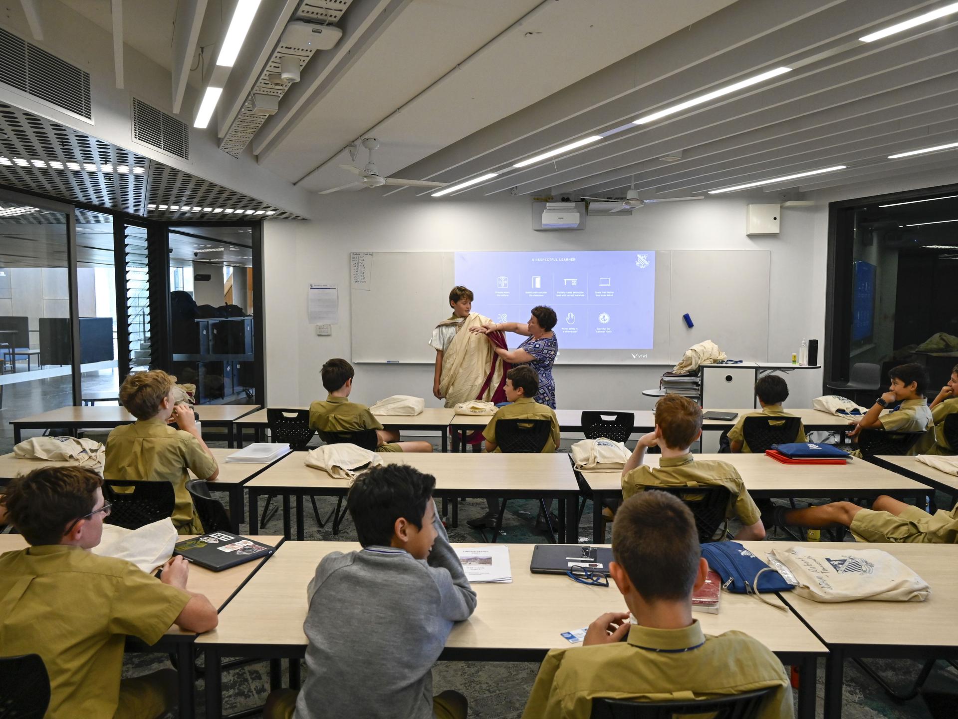 Students learn the language by reading stories about life in Pompeii and Rome. Teachers create opportunities for students to develop a deep understanding of what it was like to live in this ancient world. “They learn about and engage with these languages and cultures in ways that recognise commonalities and differences and create connections. This challenges them to reflect on their own identity, values, attitudes, beliefs and citizenship.” (NESA Classical Languages K-10 Syllabus).