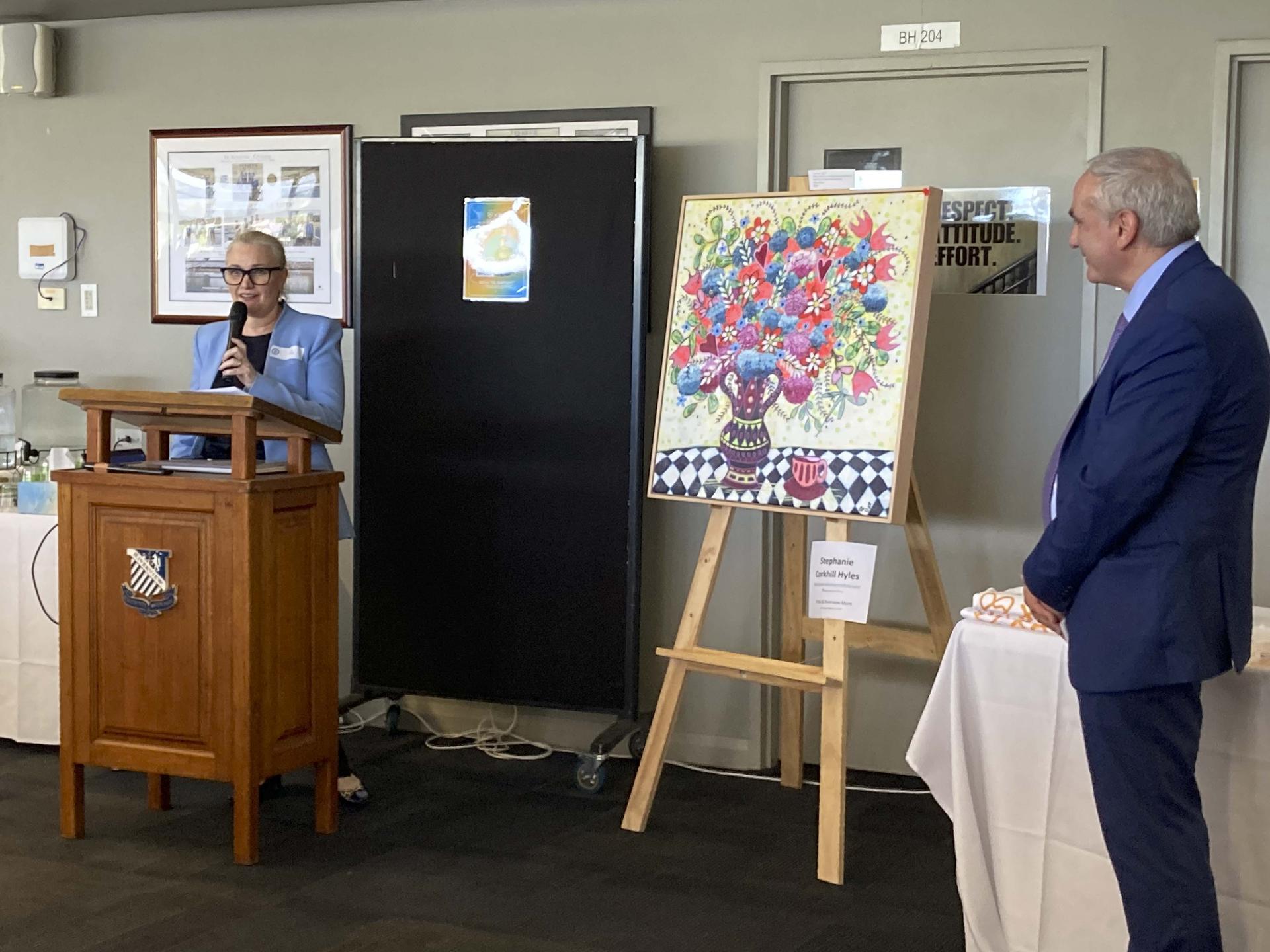 The “Art to Aid” theme enabled artists from within and outside the Riverview community to exhibit and sell their artworks, with a percentage of sales going to the charity. Highlights of the exhibition were the “Riverview Roses” photos by our photography students (noting 100% of student sales going to the charity), and the five fabulous Riverview Mums/artists who exhibited their works.