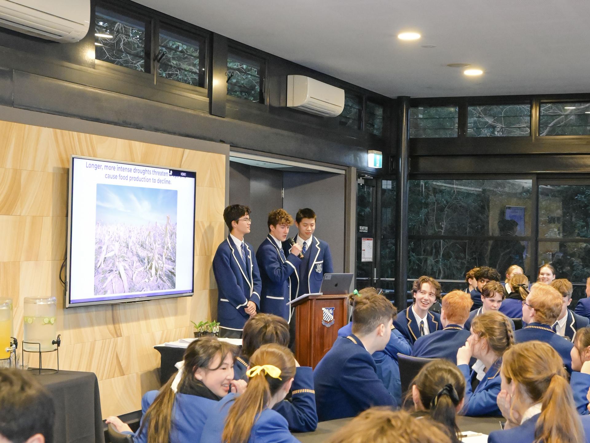 Students then gathered in Cova Cottage and the topic was introduced by presenters, Alexander Teoh, Ethan Li and Mitch Haigh. The students set the scene by acknowledging that Caring for Our Common Home is the central message of Laudato Si’, the encyclical letter written by Pope Francis in 2015, a leader and change maker who has made it a mission for Catholics around the world to commit to protecting the environment.