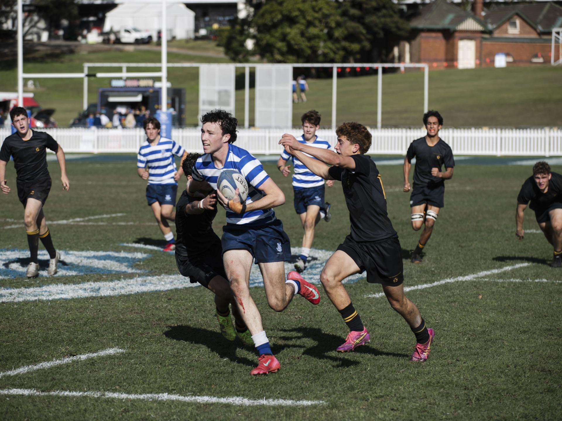Having secured the points in the first competition round with High the Riverview team was keen to maintain momentum and put another Premiership contender behind them. The team’s preparation had been affected by players absent due to injury, suspension and covering illness in the 1st XI. As had been the case in the previous match the first half saw spirited and well-contested play but neither team was able to make a decisive strike and take a lead into the break.