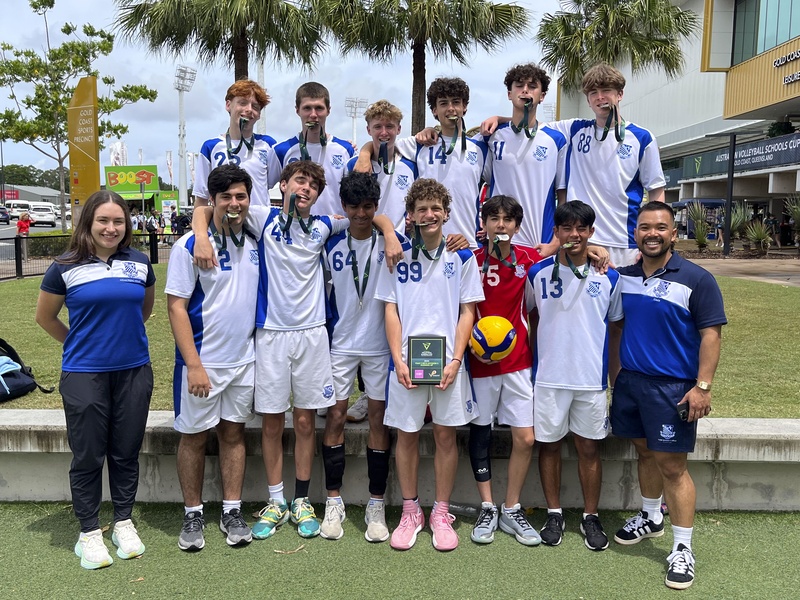 Earlier this month, our Year 9 boys volleyball team travelled to the Gold Coast to compete in the Australian Volleyball Schools Cup (AVSC), one of the largest and most competitive school volleyball tournaments in the country. Over the course of the week, the team not only displayed remarkable skill and teamwork but also earned a well-deserved Silver Medal, finishing as the second-best team in their division.