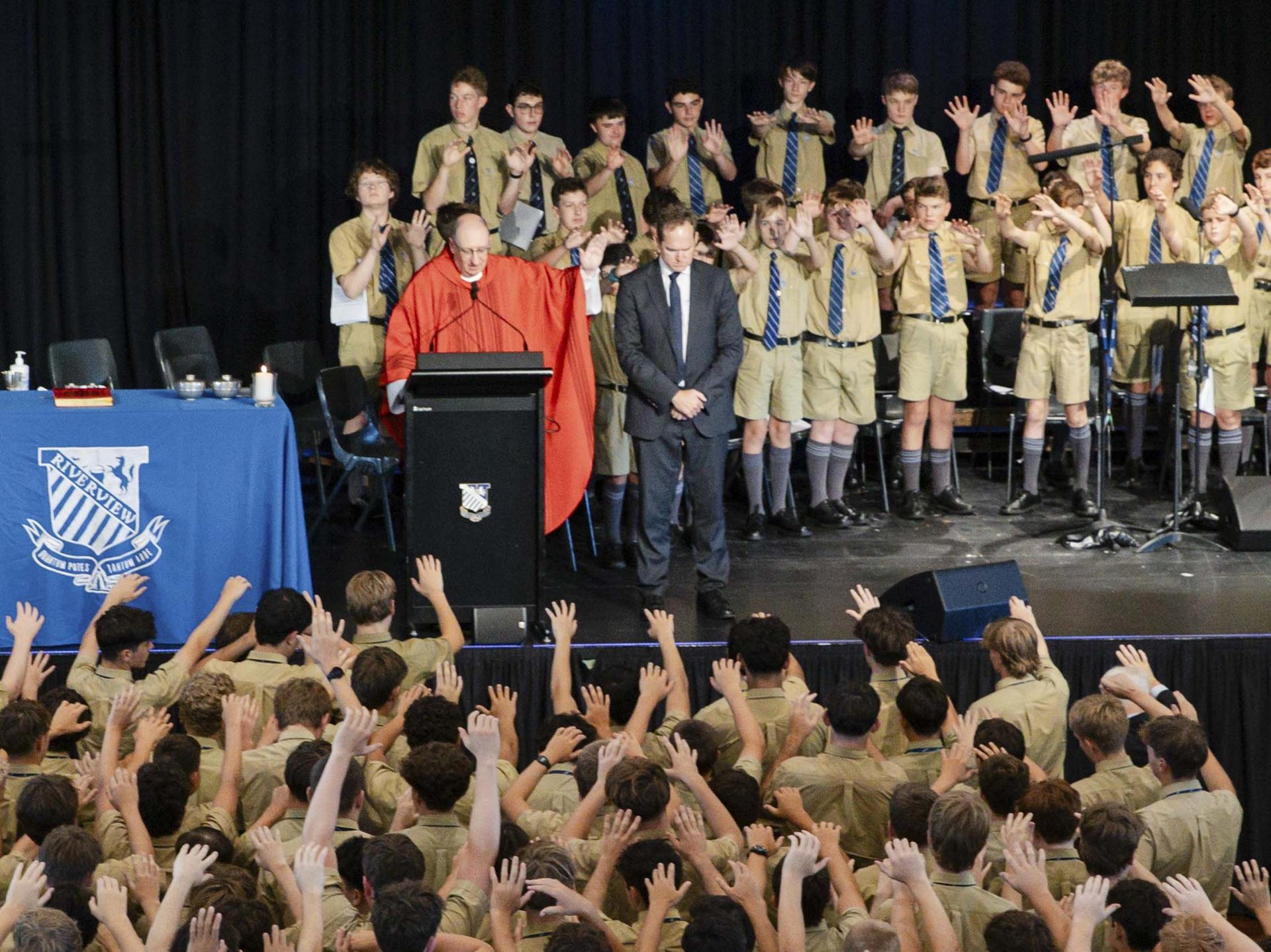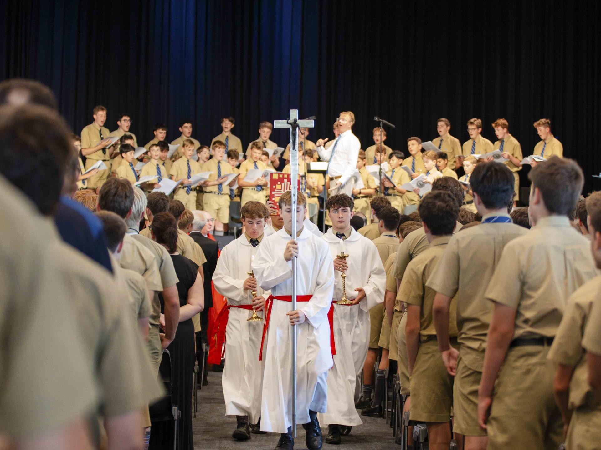 The tradition at Jesuit schools around the world is that the opening mass of the school year is always the Mass of the Holy Spirit, where we come together to give thanks to God for the gift of each other and to ask the Holy Spirit to bless all that we do this year whether it be in the classroom, in our pastoral houses and mentor groups, in the boarding house, on the sporting fields and waterways, in the dramatic arts, in developing our musical abilities in the Woods, or developing our spiritual life with the daily examen, days of reflection and retreats or through different service activities we engage in.