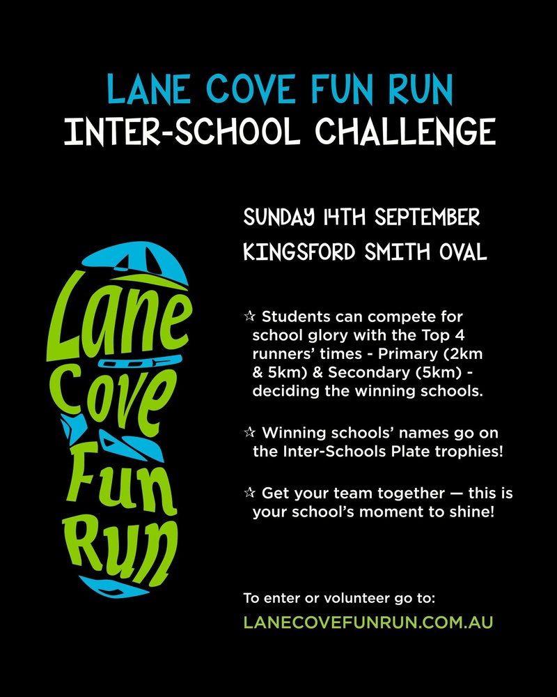 We’re excited to invite your students to take part in the Lane Cove Fun Run Inter-School Challenge on Sunday 14th September at Kingsford Smith Oval .