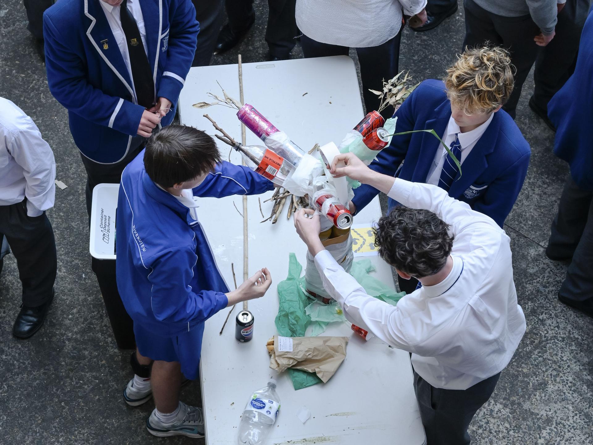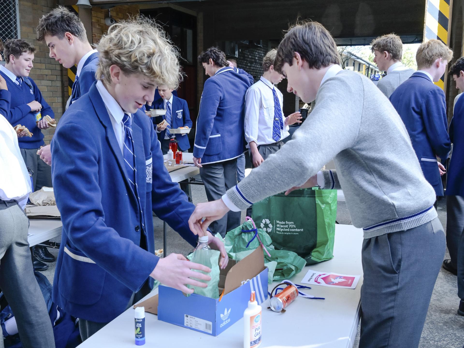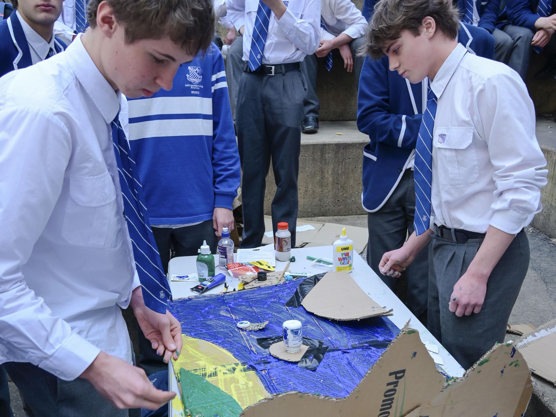 Once completed, the installations were proudly displayed in the JJ & Mary Room. The art installations will be judged by the wonderful Art Department and Fr Tom who will carefully assess each entry according to creativity, originality, alignment with the theme, effective use of recycled materials, and the ability to engage the community.
