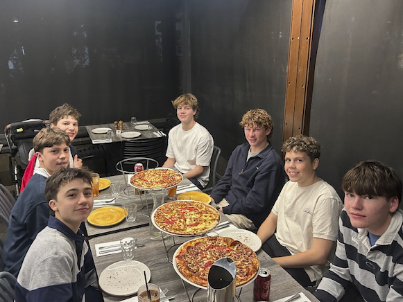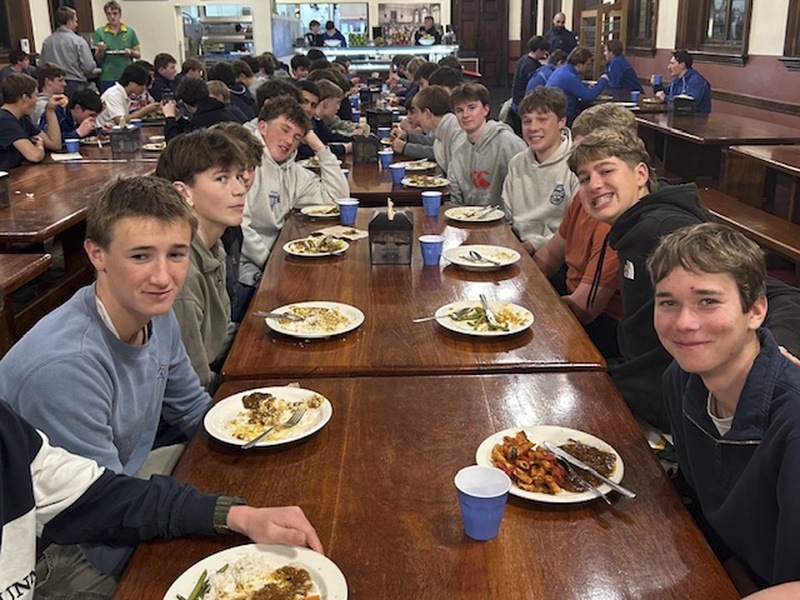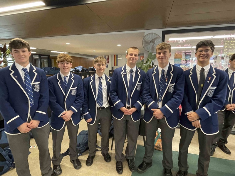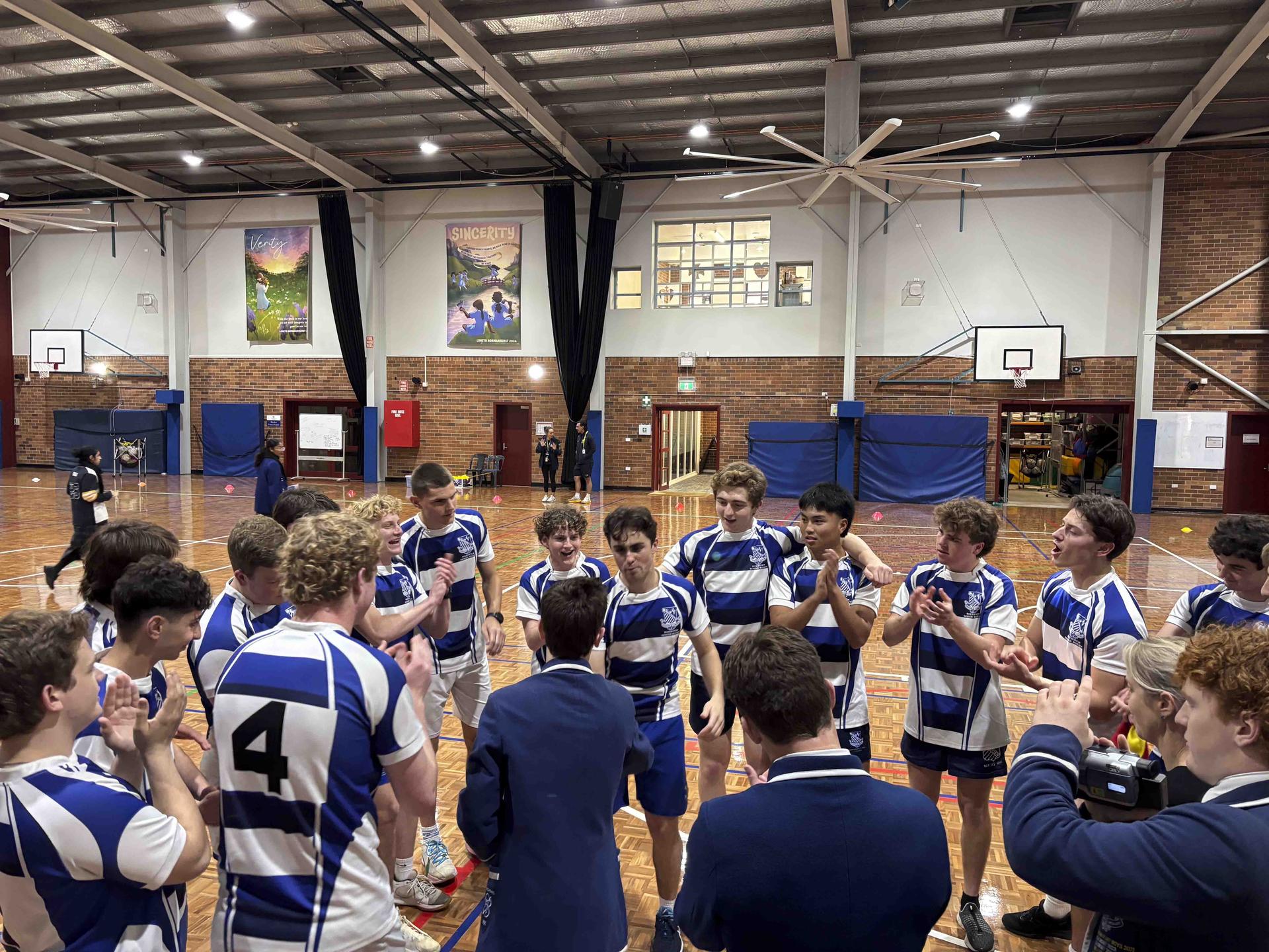21 boys joined by Mr Begg and Mrs Smith departed after receiving a Solemn Apostolic Blessing from Fr Rector. We knew the pressure was on, but trusted our preparation and our plans. We were hungry, most of us for the win, some of us for the sausage sizzle happening outside, but we united under the crest, under the jersey, under the bib.