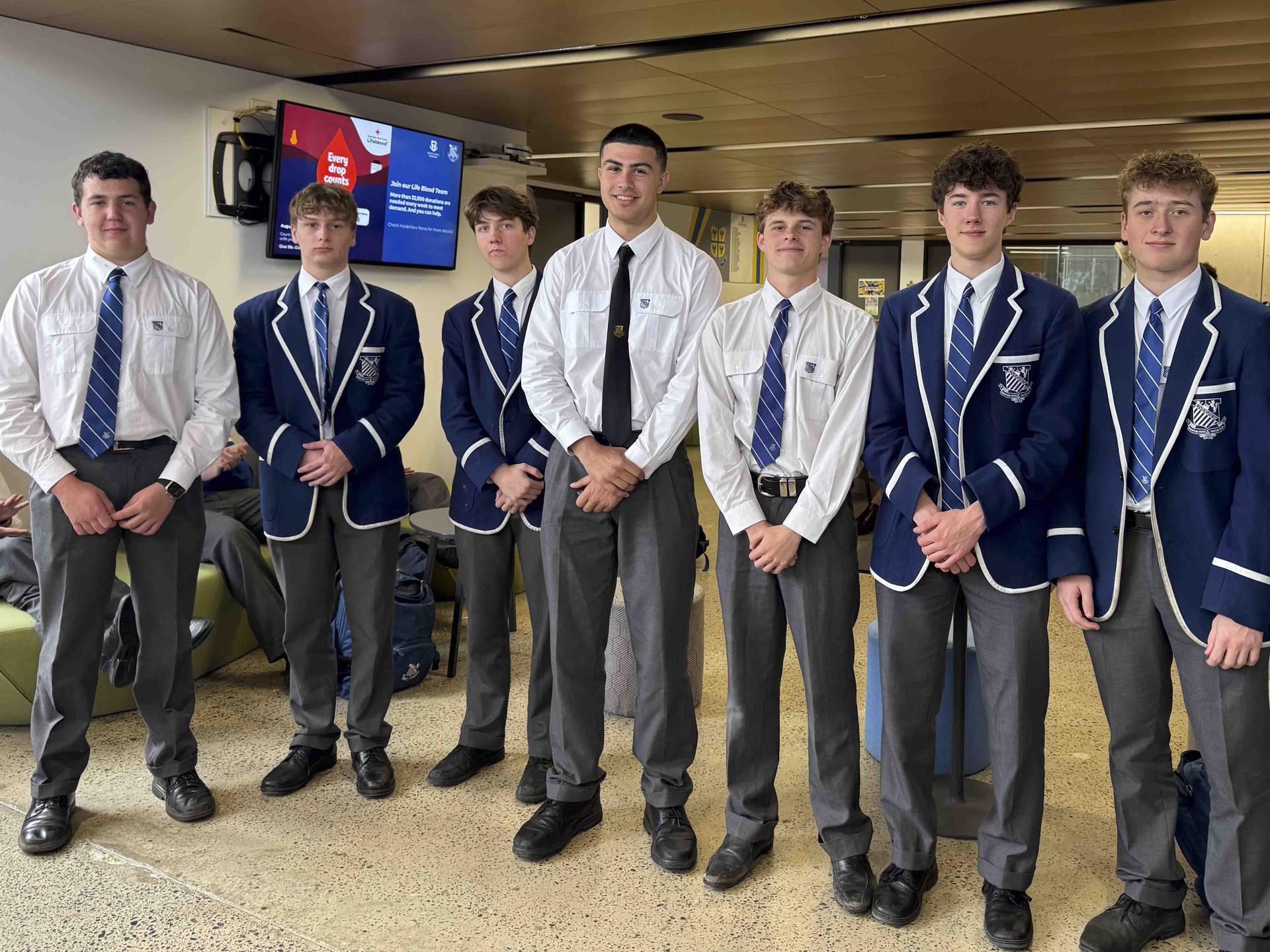 (Year 7): Elliott Johnston, Charlie McDonald, Curtis Liu, Emmanuel Charry Vergara, Thomas Sheppard