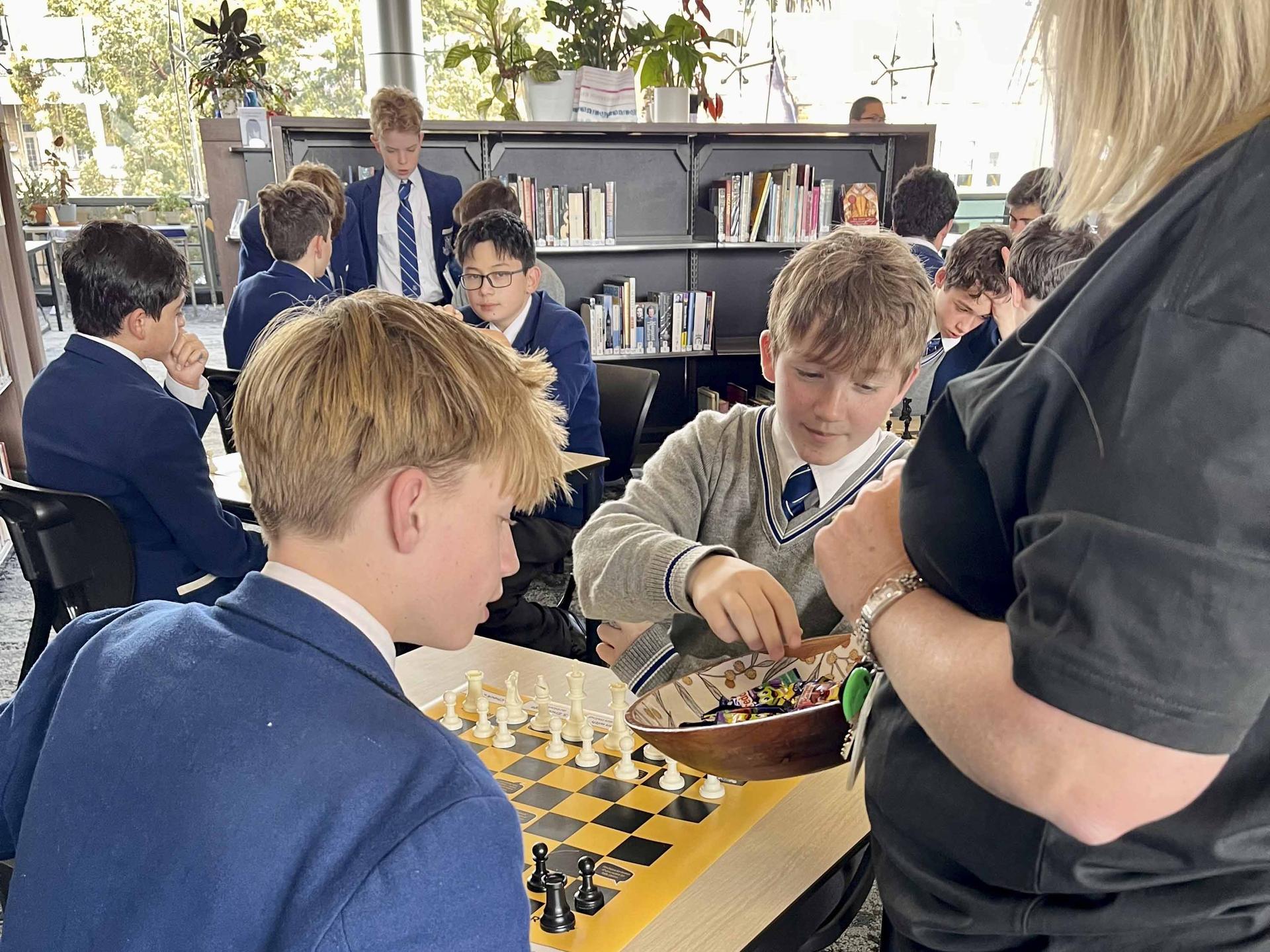 During recess there was a game of conversation bingo that involved answering some conversation starter questions. During lunch it was chess with the conversation starters.