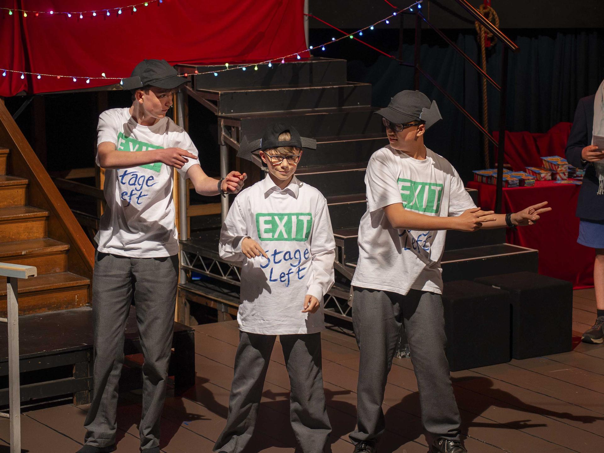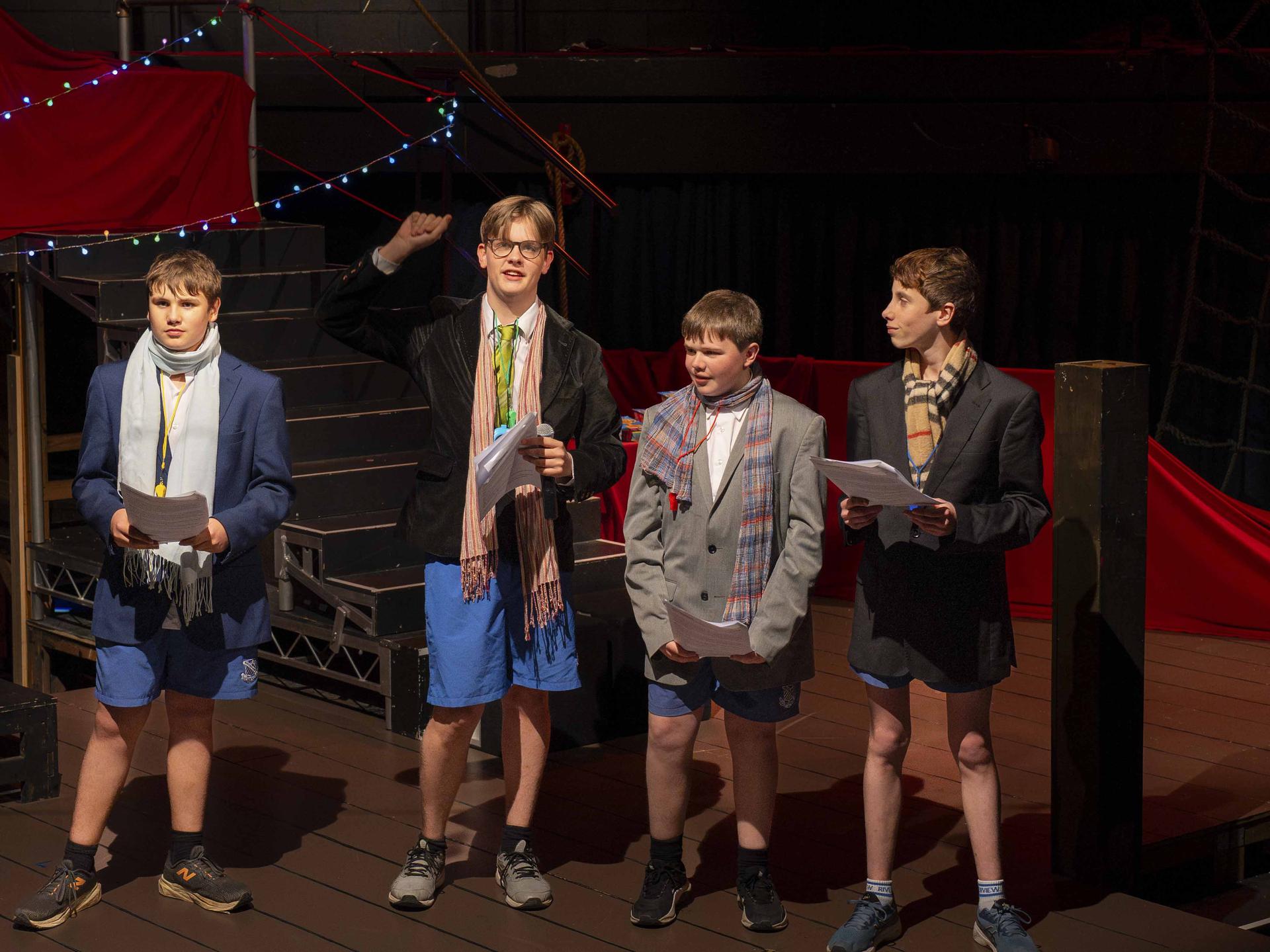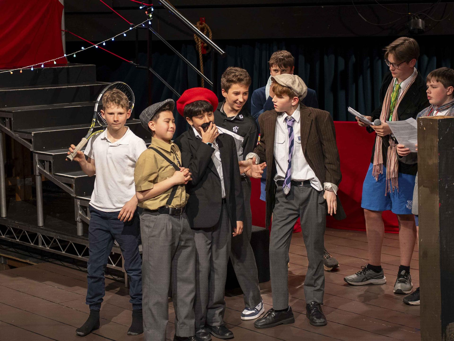 Our panel of judges kept the laughs rolling while scoring each scene out of five in their categories. After Mr. Page confiscated their “1’s”, their judging improved significantly! Thank you to: Max Finsterer (Year 10), Jude Feilen (Year 10), Finn Egerton-Warburton (Year 11), Angus Devlin (Year 12) and Harrison Hooper (Year 12).
