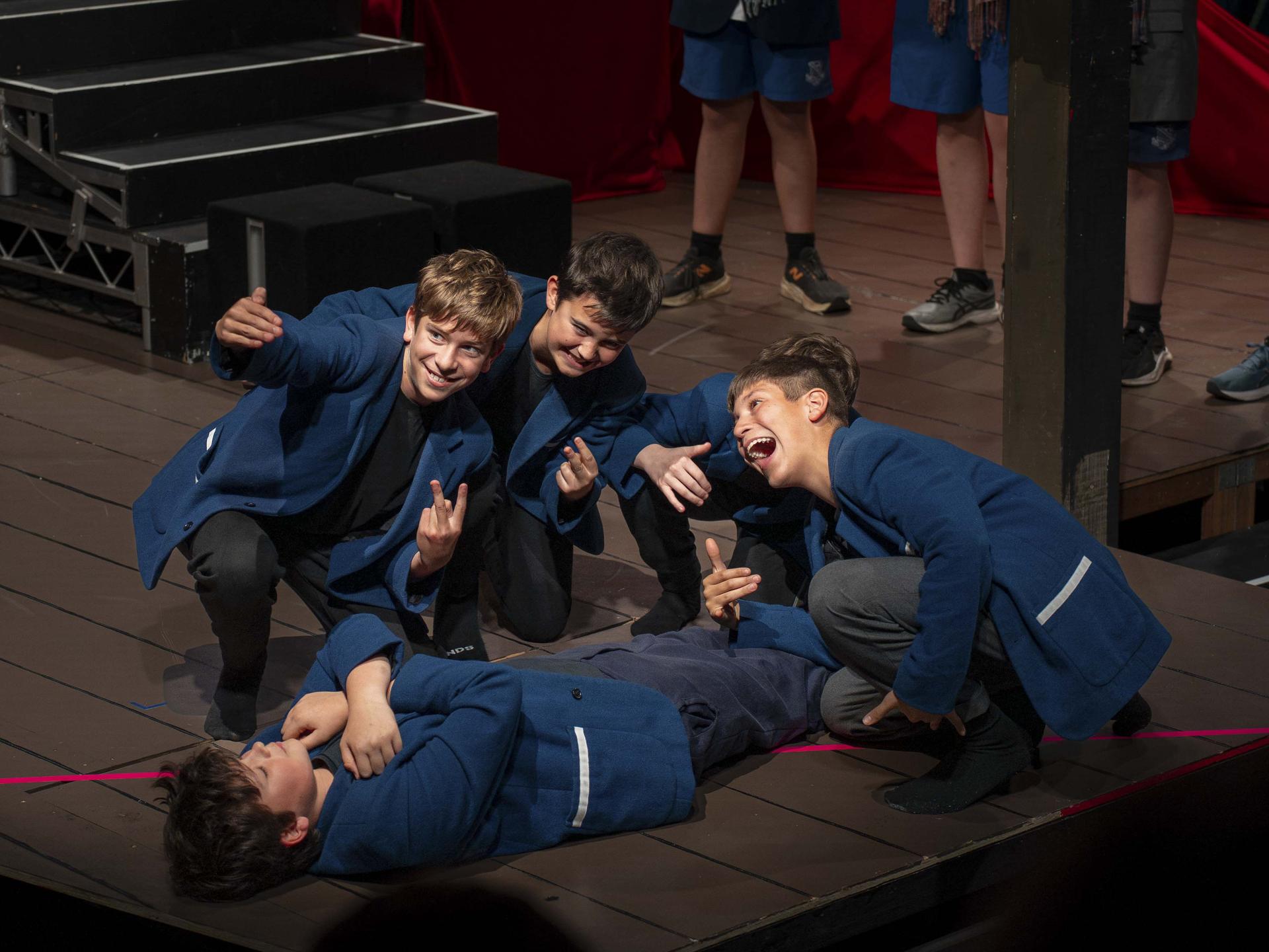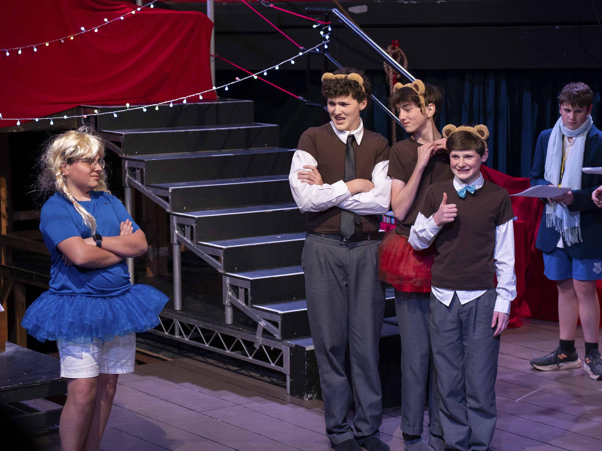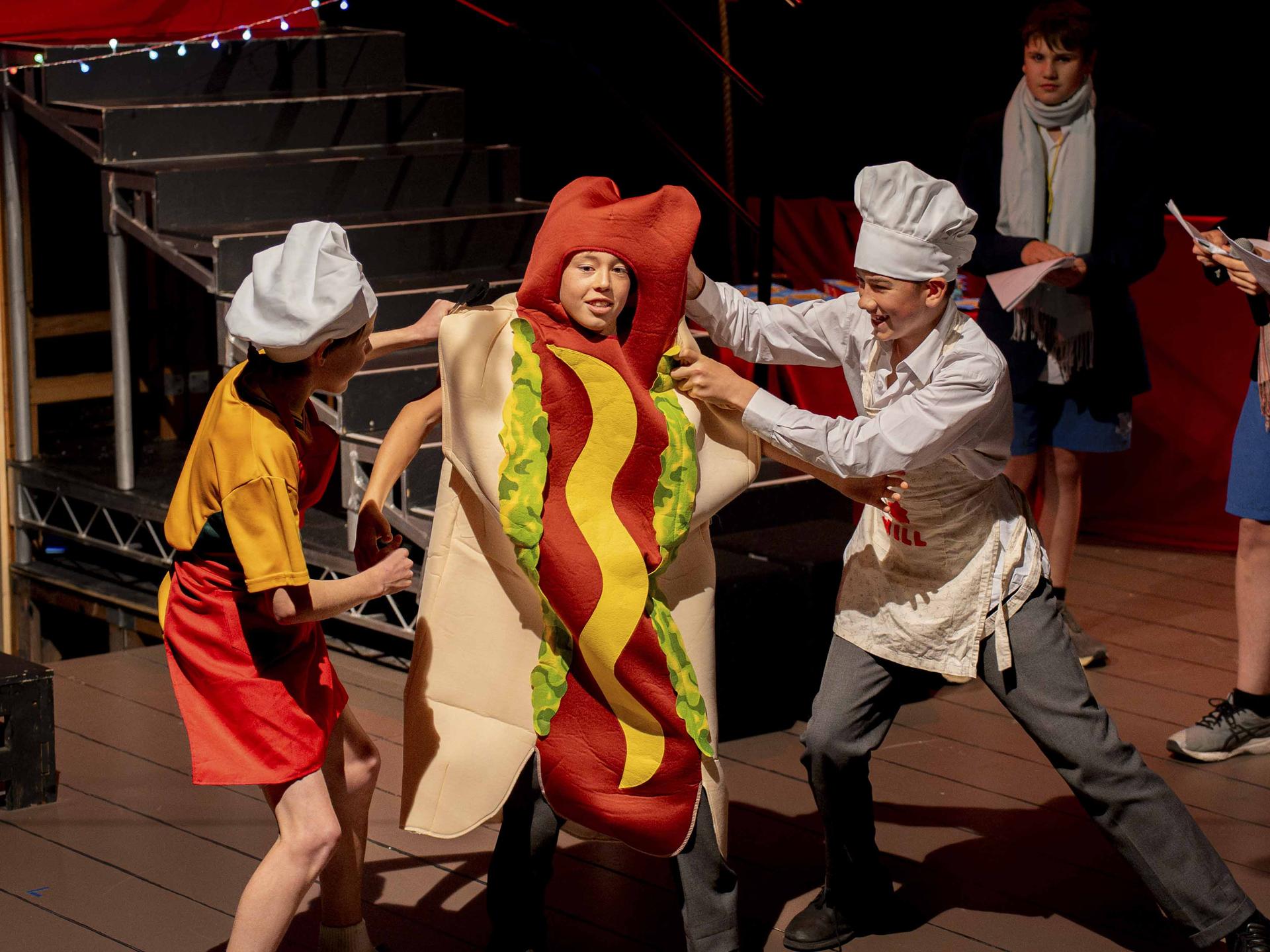 Our panel of judges kept the laughs rolling while scoring each scene out of five in their categories. After Mr. Page confiscated their “1’s”, their judging improved significantly! Thank you to: Max Finsterer (Year 10), Jude Feilen (Year 10), Finn Egerton-Warburton (Year 11), Angus Devlin (Year 12) and Harrison Hooper (Year 12).