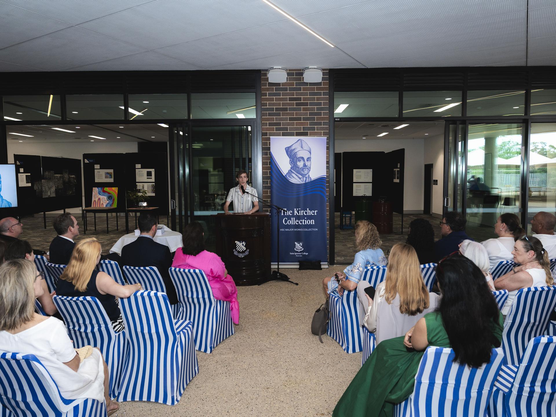 That evening, the College hosted the launch of the 2025 Kircher Collection in Wingaru Hall . The Kircher Collection celebrates and memorialises particularly high achieving major woks across a number of HSC courses including Visual Arts, Music, Drama, Aboriginal Studies, Engineering Studies, English Extension, History Extension and Science Extension. The scope of scholarship on display was genuinely impressive, and we were honoured that Christopher Malouf (OR2007) joined us to deliver the keynote speech to assembled guests.