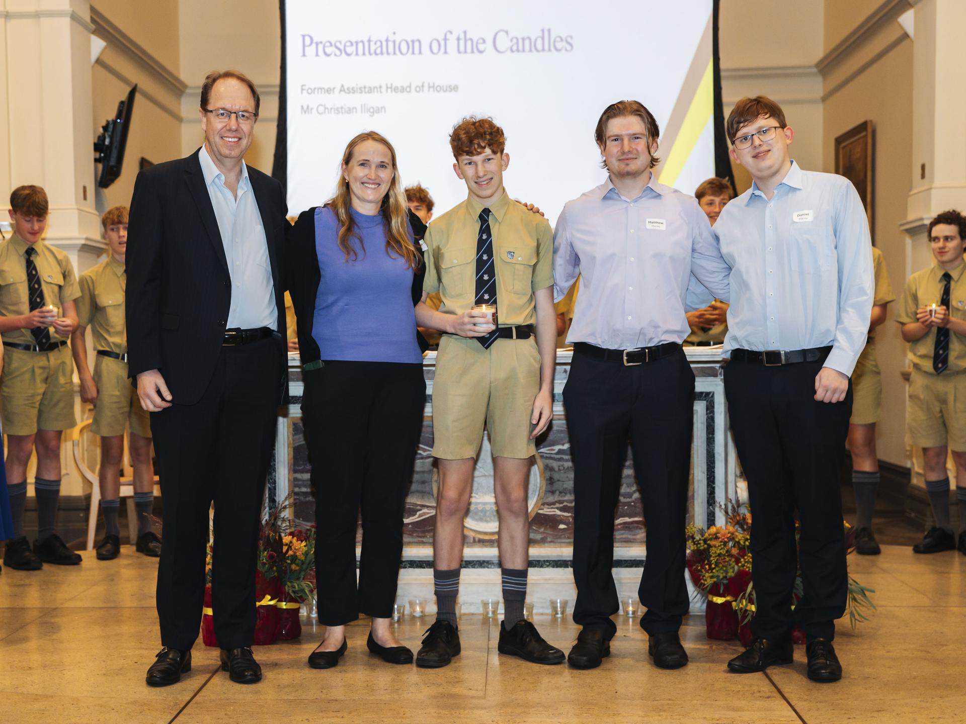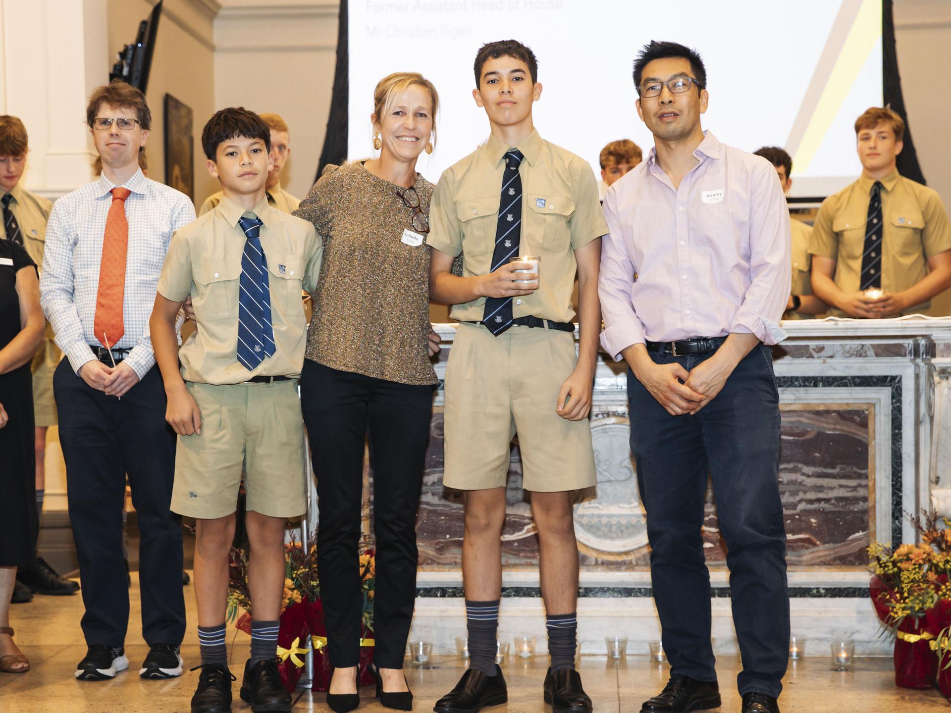 Left: At the Ricci House Mass | Middle: The Laureate Assembly | Right: Studium Award Winner William Pettiona, College Dux George Gaha and Proxime Christian Spiropoulos