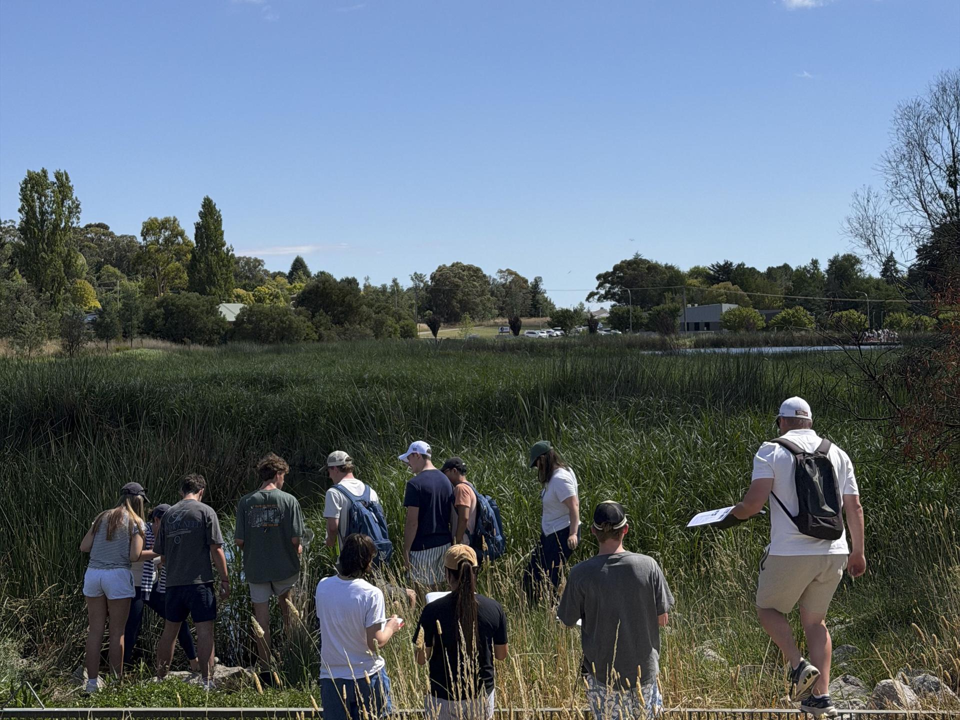 Fieldwork continued at the Ploughman's Lane Wetlands, where students undertook water testing and evaluated the effectiveness of the wetland management scheme. The group then travelled to the summit of Mount Canobolas to examine the geographic processes that have shaped the town of Orange, including discussion of its cool climate viticulture. The experience concluded with a debrief and sausage sizzle at Lake Canobolas.