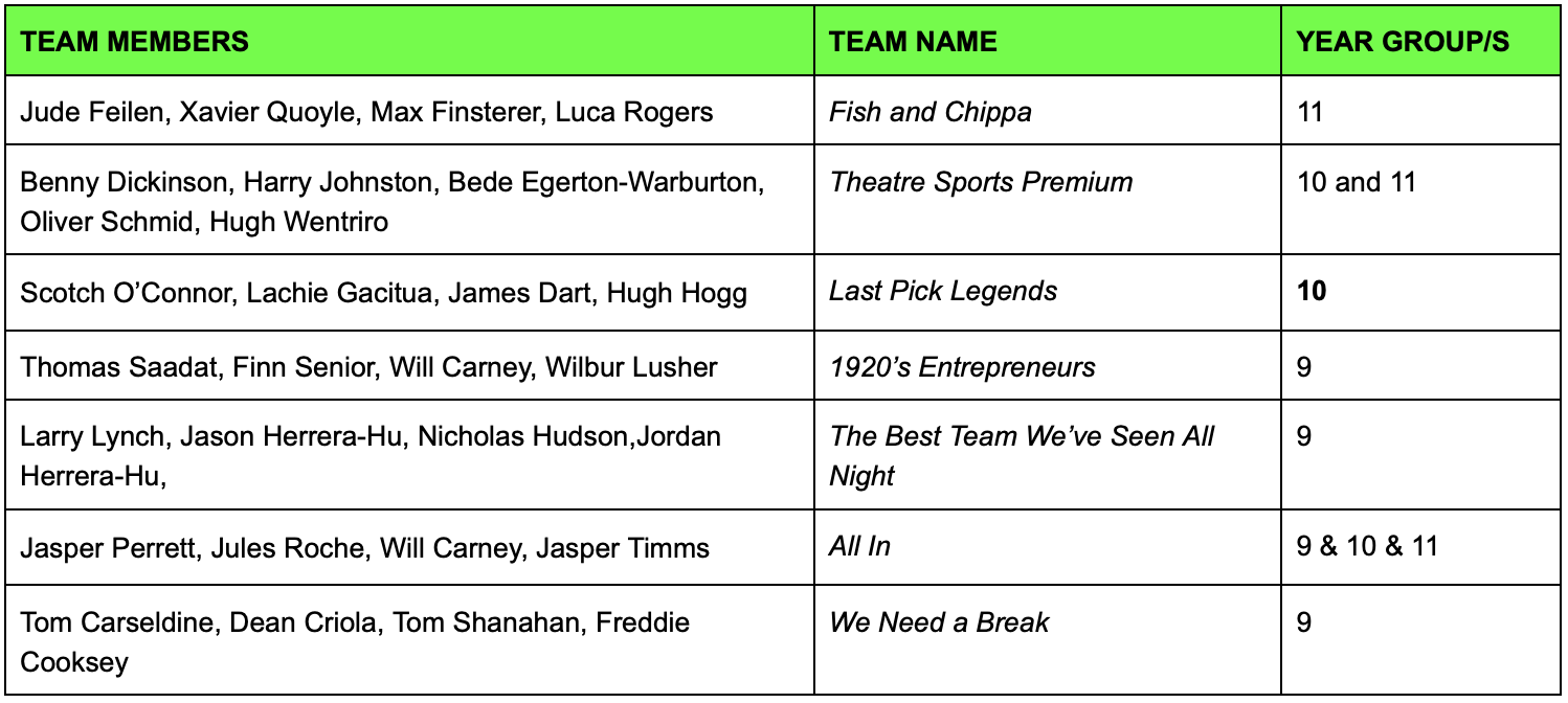 Get ready for a night of fast thinking, big laughs and brilliant improvisation as our Year 9–12 students take to the stage for the 2026 Intermediate and Senior Theatresports Competition. Watch teams battle it out in a series of hilarious improvisation games where anything can happen…