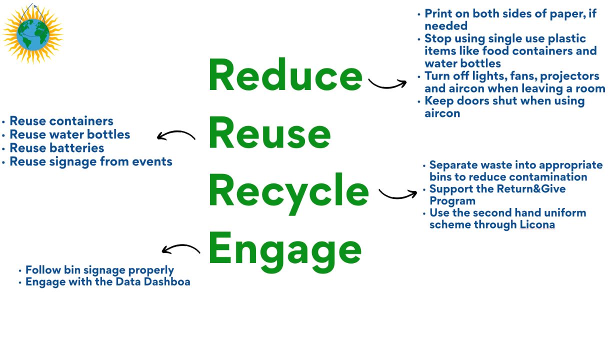 In addition, we proudly launched the new bin signage that is going to be rolled out across the school over the coming weeks. The new signage, which was observed in mentors this week, is part of an education piece that serves to inform our community on what can and cannot go in each bin.