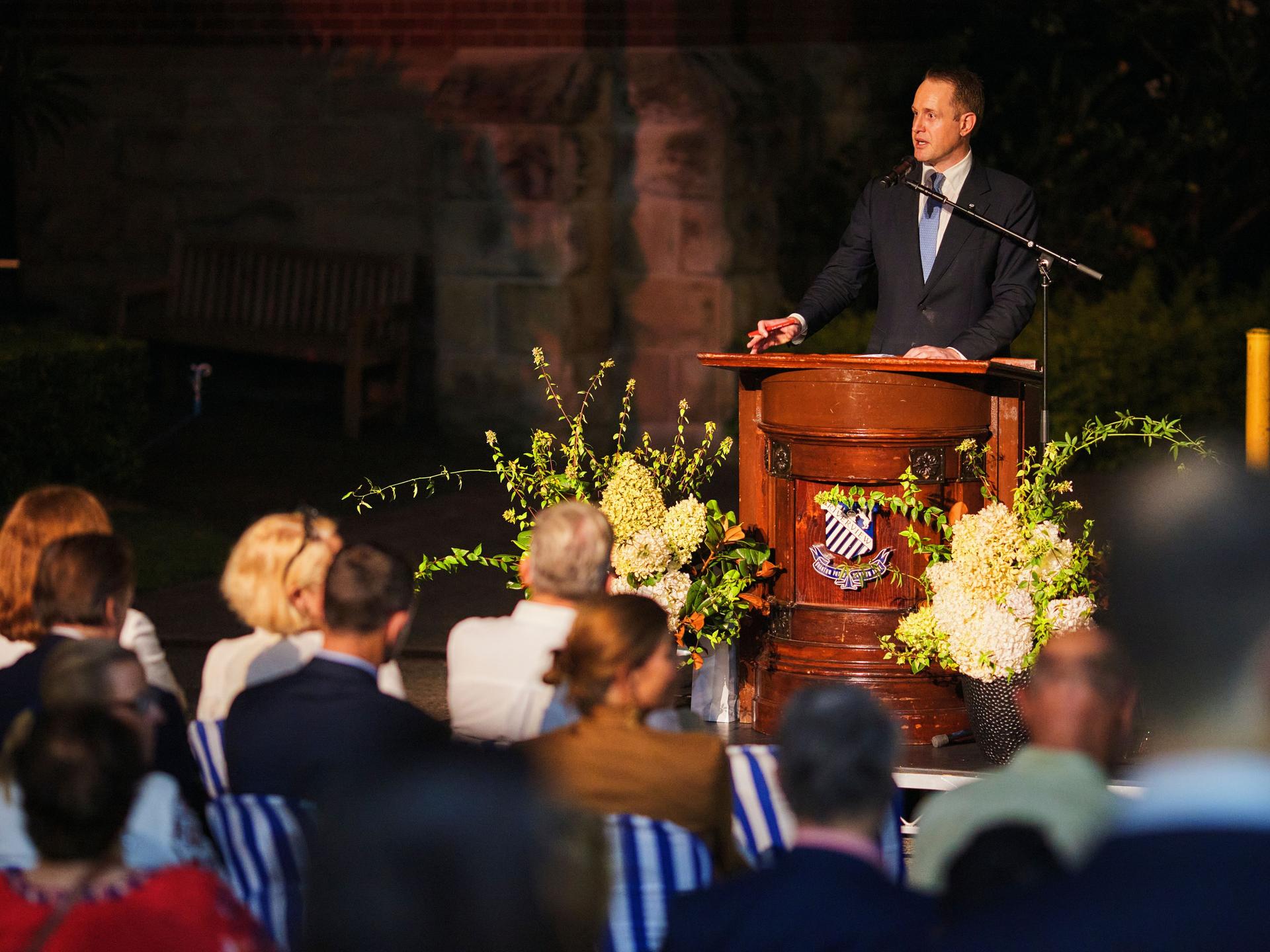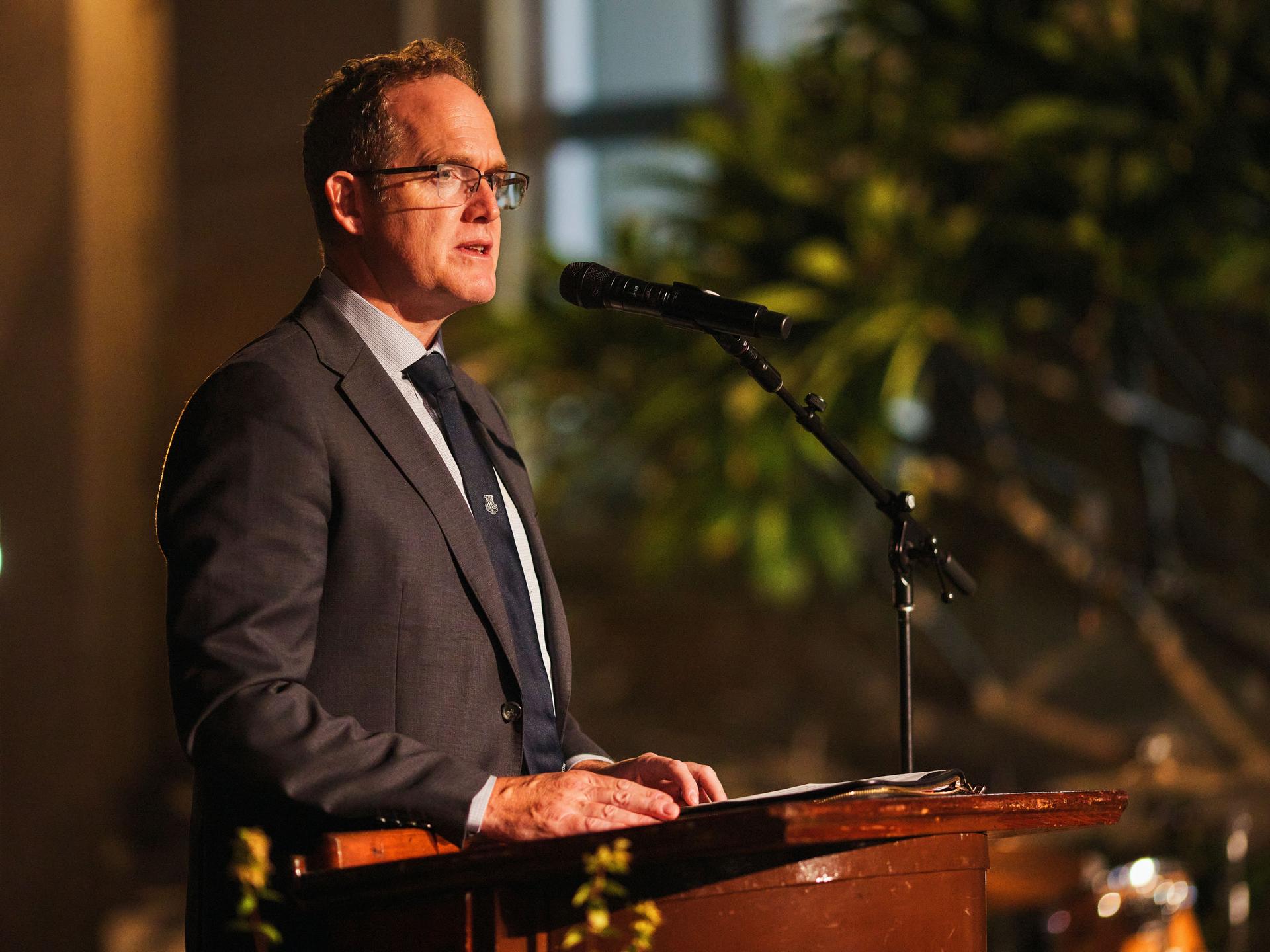 A highlight of the evening was hearing from former bursary student Tommy Randall (OR2009), whose reflections brought to life the impact of donor support. Now a lawyer based in Canberra, Tommy spoke about the transformative impact of his time at Riverview, acknowledging that he would not be the same person without the opportunities made possible through the generosity of others. “I don’t know where I would have ended up, who I would have become, had I not had the immense good fortune of a Riverview education.” Tommy Randall.