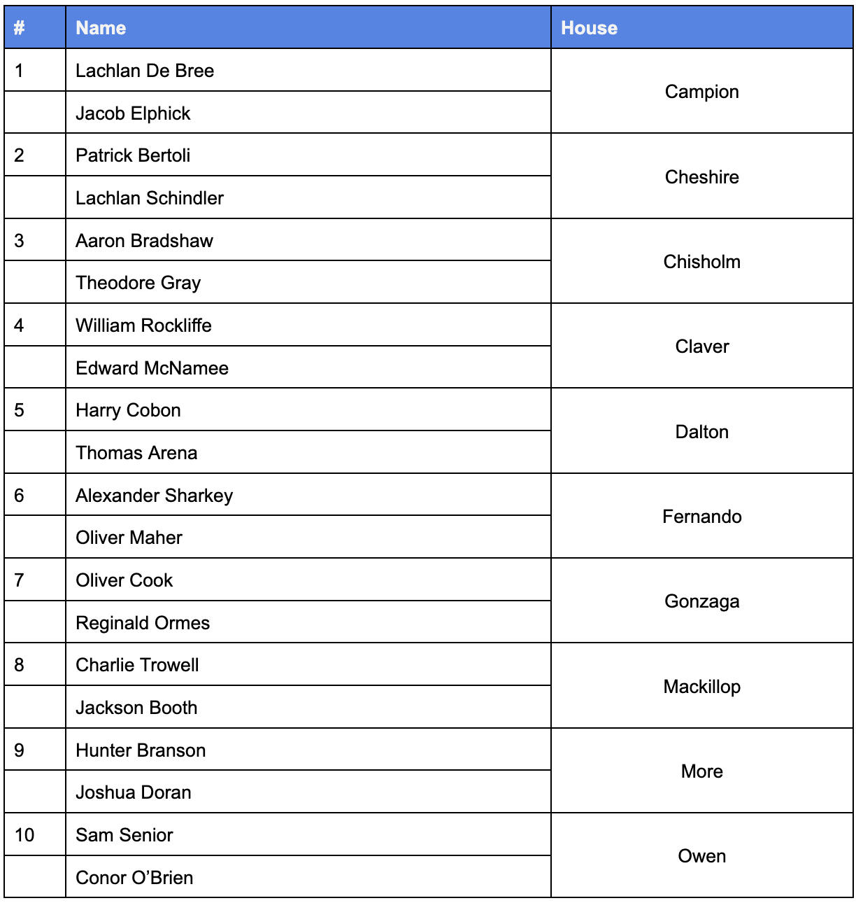 The following boys will represent their Houses in the Grand Final!